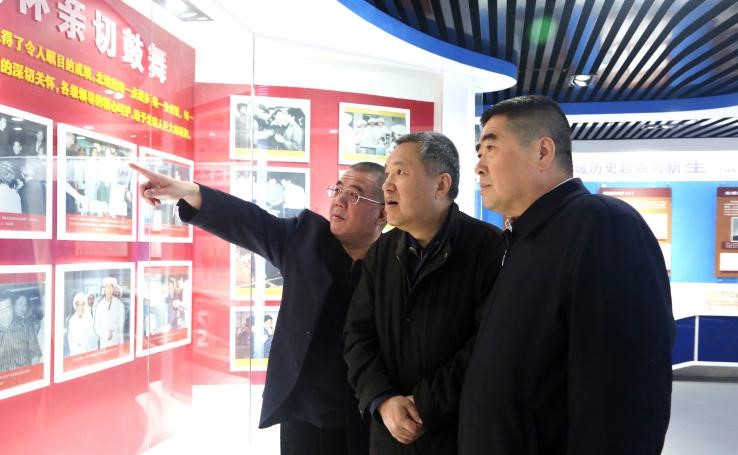 2019年4月一輕控股公司黨委書記、董事長蘇志民陪同國家市場監(jiān)督管理總局局長張茅參觀北玻展室